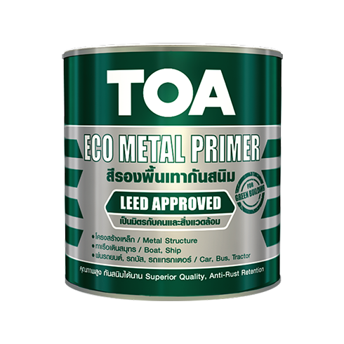 สีรองพื้นกันสนิม ทีโอเอ อีโค เมทัล ไพร์เมอร์ เป็นแอลคีดชนิดพิเศษมีเนื้อสีมาก มีสารอินทรีย์ที่ระเหยง่ายในปริมาณต่ำ จึงไม่ทำลายสิ่งแวดล้อม มีผงกันสนิมชนิดพิเศษที่มีประสิทธิภาพสูง สามารถยึดเกาะได้ดีบนพื้นผิวโลหะ ไม่มีส่วนประกอบที่เป็นอันตรายของโลหะหนัก เช่น ตะกั่ว, ปรอท, แคดเมียม และโครเมียม ใช้งานง่าย สามารถใช้เป็นสีรองพื้นทั้งงานใหม่ และซ่อมโครงสร้างของงาน สะพาน ถัง หรือ เครื่องจักรได้
