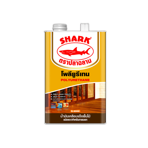 โพลียูรีเทน 1 ส่วน ตราปลาฉลาม ชนิดเงา สำหรับภายนอก S-4000 เป็นโพลียูรีเทนชนิดที่แห้งแข็งโดยทำปฏิกิริยากับความชื้นในอากาศ เหมาะสำหรับพื้นไม้ภายในที่มีแดดส่องถึงเป็นบางเวลา ทาง่าย ให้ความเงางามสูง ทนทานต่อสารเคมี ทนต่อการขูดขีด และการกระแทกได้ดี