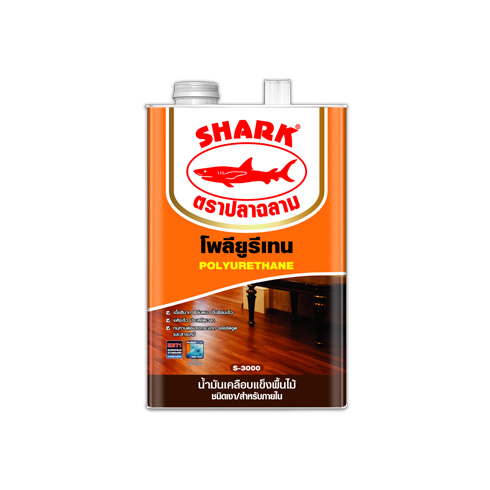 โพลียูรีเทน 1 ส่วน ตราปลาฉลาม ชนิดเงา สำหรับภายใน S-3000 เป็นโพลียูรีเทนชนิดที่แห้งแข็งโดยทำปฏิกิริยากับความชื้นในอากาศ เหมาะสำหรับพื้นไม้ภายในที่ไม่มีแดดส่องถึง ทาง่าย ให้ความเงางามสูง ทนทานต่อสารเคมี ทนต่อการขูดขีด และการกระแทกได้ดี